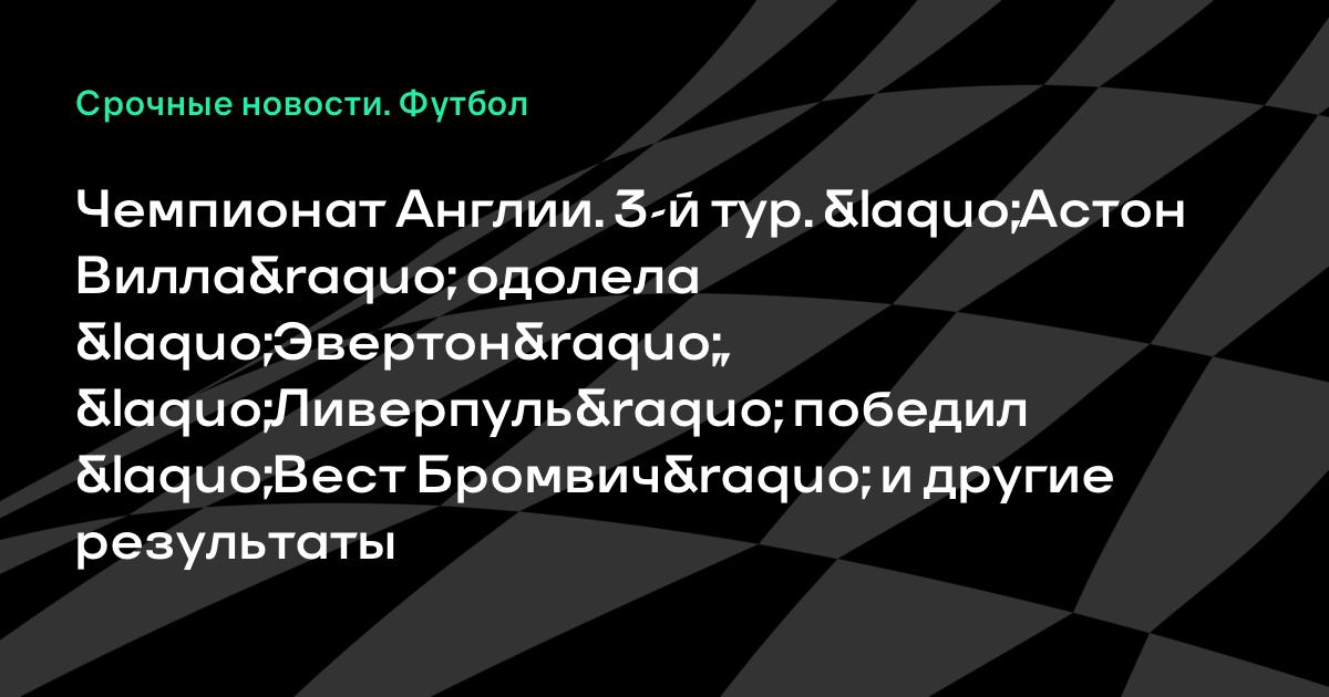 Чемпионат Англии. 3-й тур. «Астон Вилла» одолела «Эвертон», «Ливерпуль» победил «Вест Бромвич» и другие результаты