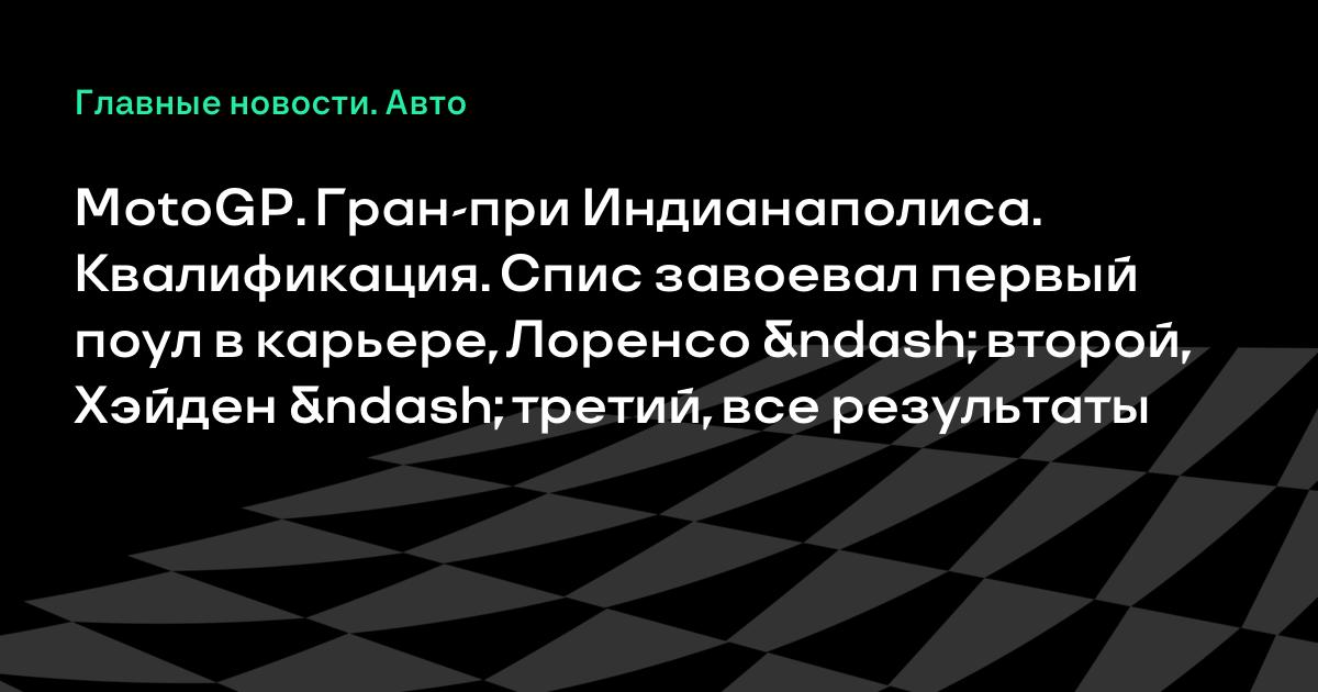 MotoGP. Гран-при Индианаполиса. Квалификация. Спис завоевал первый поул в карьере, Лоренсо – второй, Хэйден – третий, все результаты