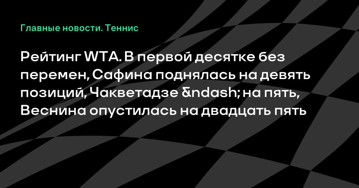 Рейтинг WTA. В первой десятке без перемен, Сафина поднялась на девять позиций, Чакветадзе – на пять, Веснина опустилась на двадцать пять