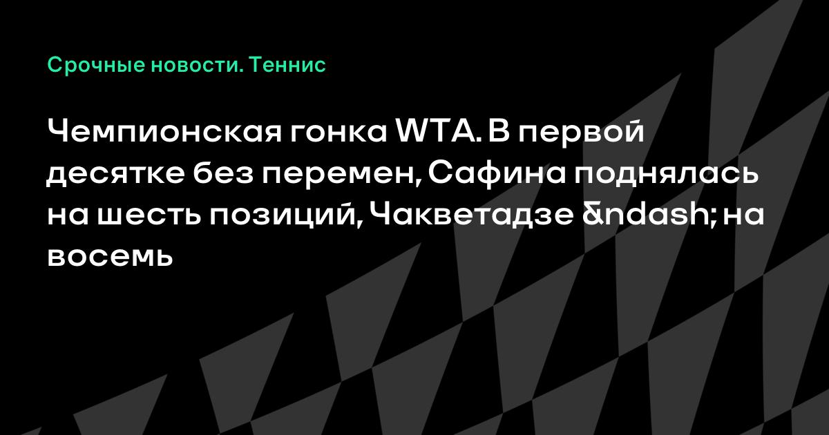 Чемпионская гонка WTA. В первой десятке без перемен, Сафина поднялась на шесть позиций, Чакветадзе – на восемь