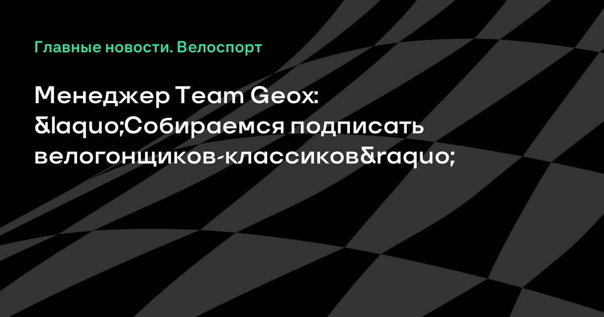 Менеджер Team Geox: «Собираемся подписать велогонщиков-классиков»