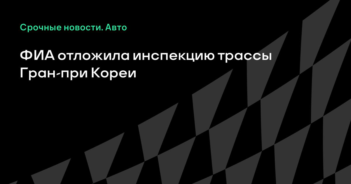 ФИА подтвердила, что отложила финальную инспекцию автодрома в Корее до 21 сентября, сообщает Autosport. Несмотря на то, что, согласно регламенту, процедура должна проводиться на позднее, чем за 90 дней до проведения Гран-при, этот пункт правил не является обязательным, а носит рекомендательный характер.