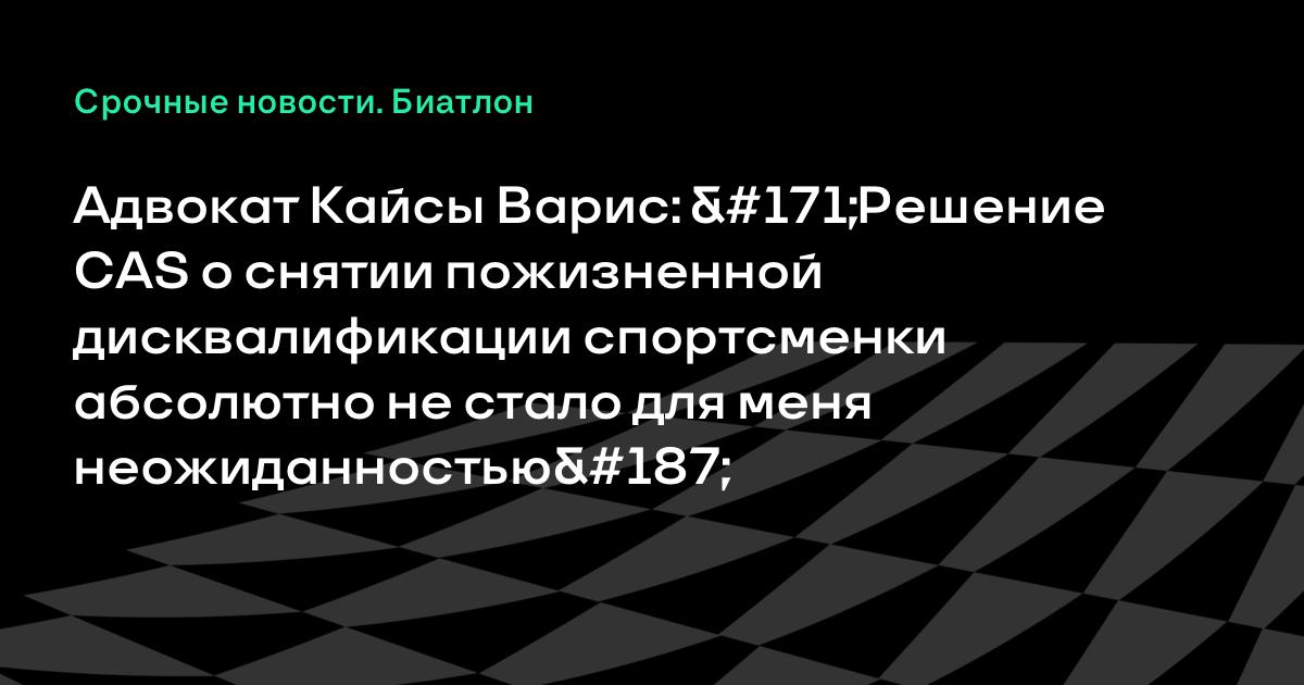 Адвокат Кайсы Варис Олли Раусте сообщил, что решение Спортивного арбитражного суда (CAS) о снятии пожизненной дисквалификации спортсменки не стало для них неожиданностью и рассказал о дальнейших планах биатлонистки.