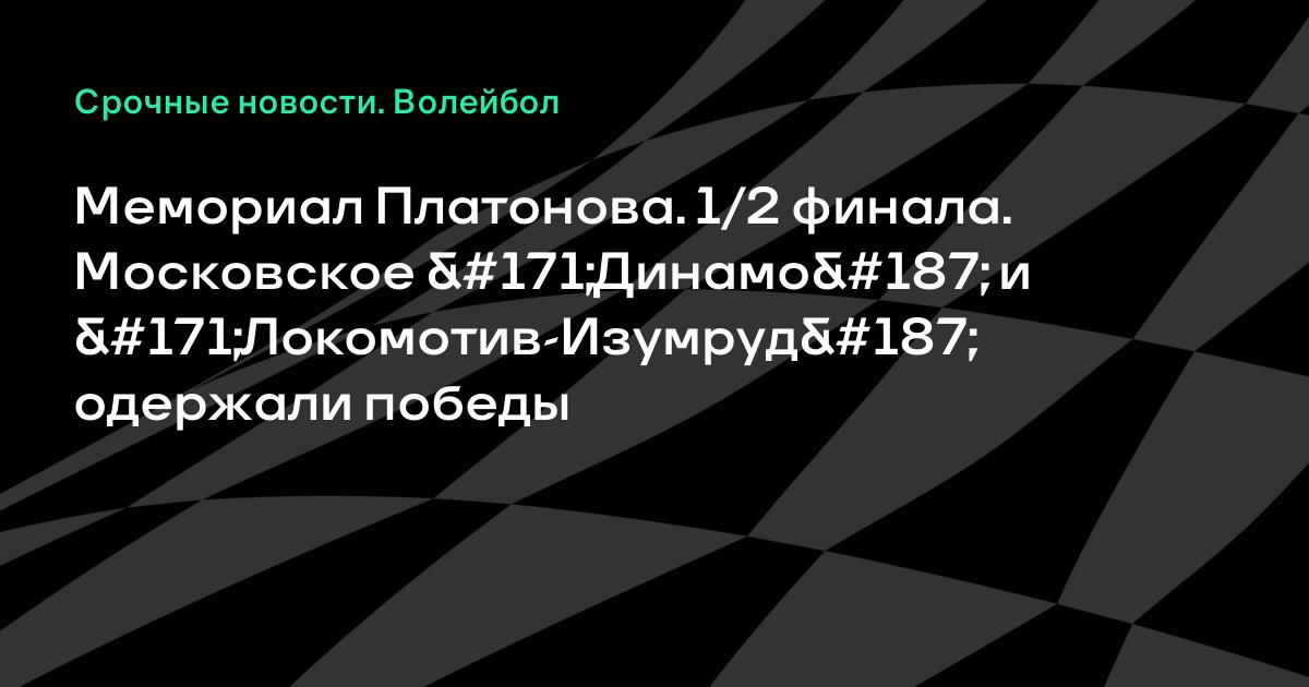 4 сентября 2010, 18:40 Мемориал Платонова. 1/2 финала. Московское «Динамо» и «Локомотив-Изумруд» одержали победы Мемориал Платонова Санкт-Петербург 1/2 финала Динамо Москва Автомобилист 3-2 (25:20, 25:21, 22:25, 24:26, 17:15) Факел Локомотив-Изумруд 1-3 (23:25, 22:25, 25:19, 16:25) Волейбол Факел Локомотив-Изумруд Динамо Москва результаты Мемориал Платонова Автомобилист