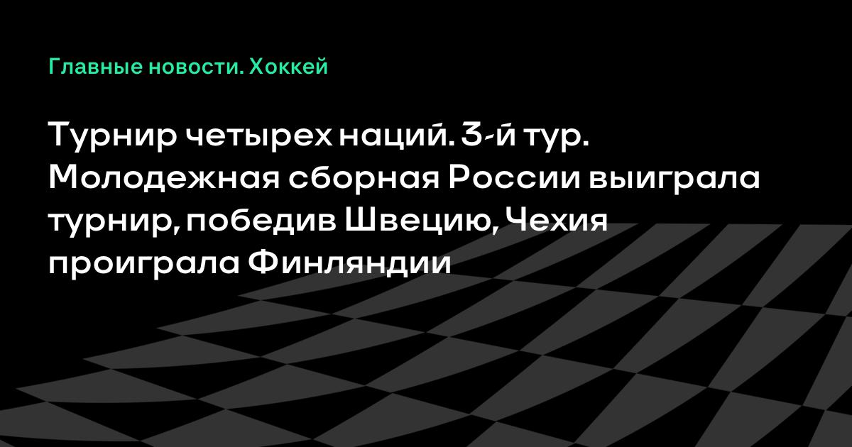 Турнир четырех наций. 3-й тур. Молодежная сборная России выиграла турнир, победив Швецию, Чехия проиграла Финляндии