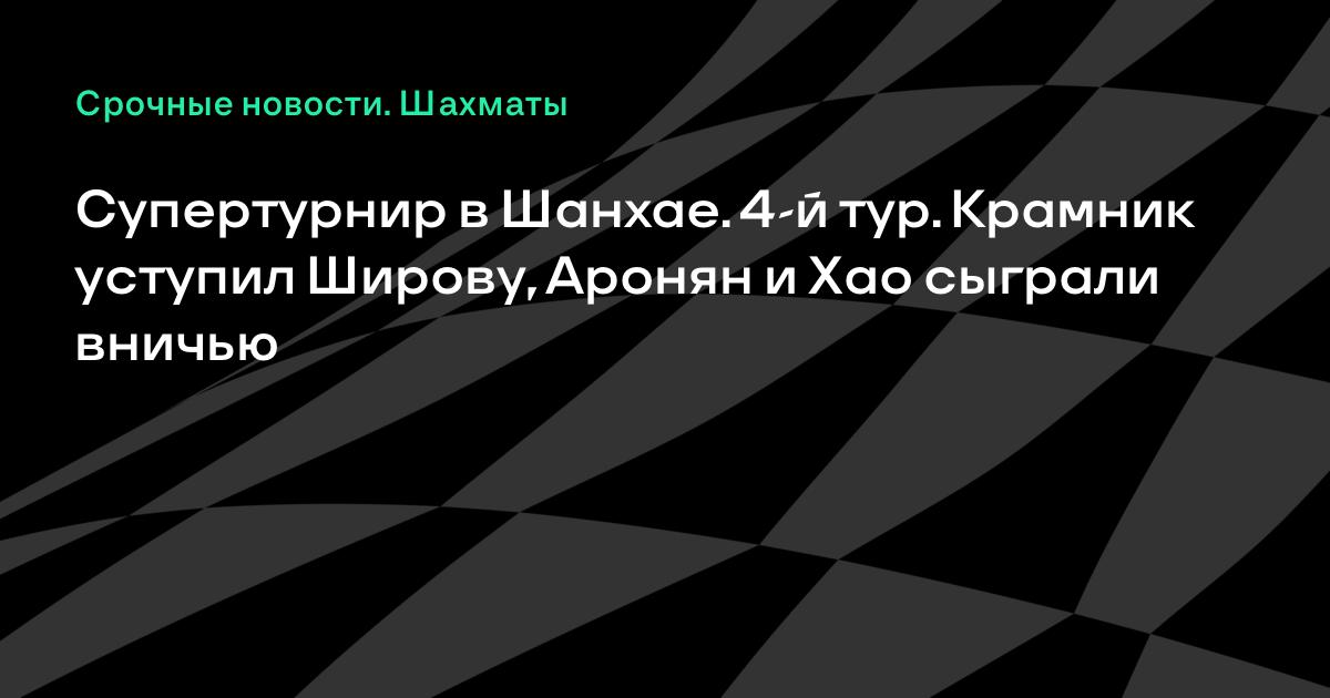 Супертурнир в Шанхае. 4-й тур. Крамник уступил Широву, Аронян и Хао сыграли вничью