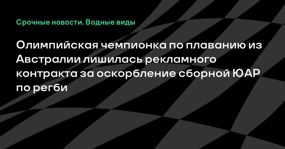 Олимпийская чемпионка по плаванию из Австралии лишилась рекламного контракта за оскорбление сборной ЮАР по регби