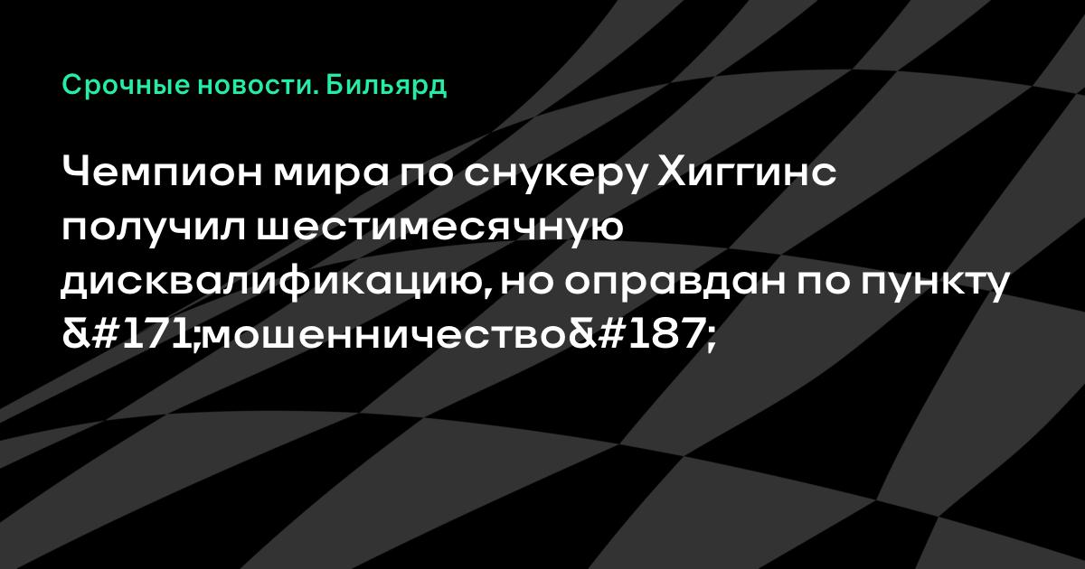 Чемпион мира по снукеру Хиггинс получил шестимесячную дисквалификацию, но оправдан по пункту «мошенничество»