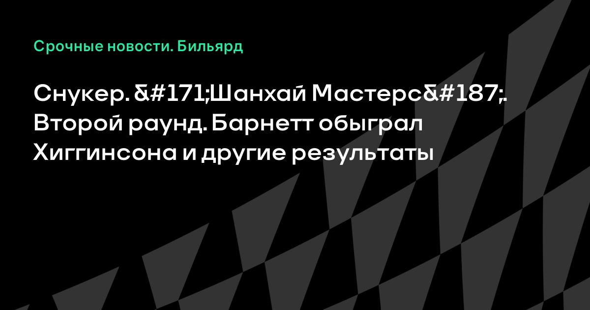 Снукер. «Шанхай Мастерс». Второй раунд. Барнетт обыграл Хиггинсона и другие результаты