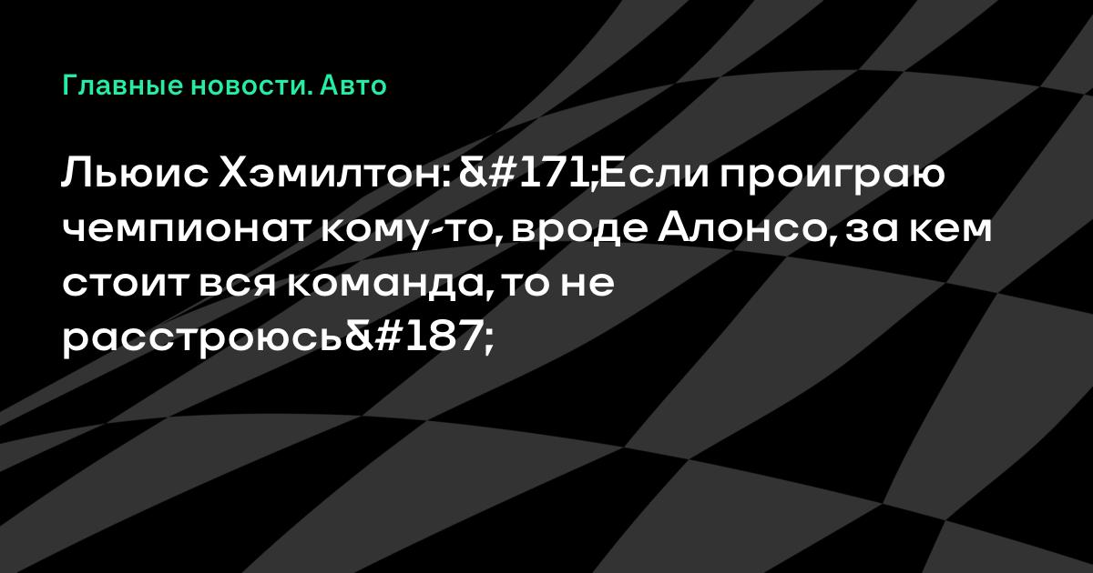 Льюис Хэмилтон: «Если проиграю чемпионат кому-то, вроде Алонсо, за кем стоит вся команда, то не расстроюсь»