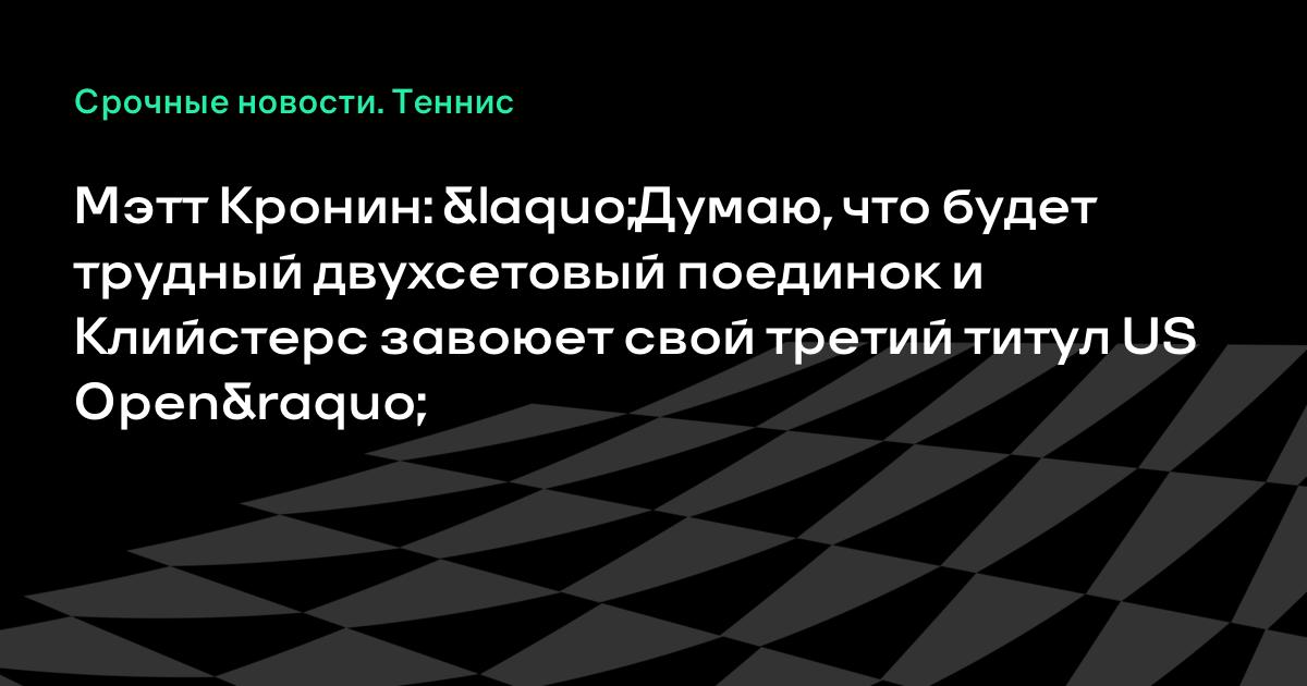 Мэтт Кронин: «Думаю, что будет трудный двухсетовый поединок и Клийстерс завоюет свой третий титул US Open»