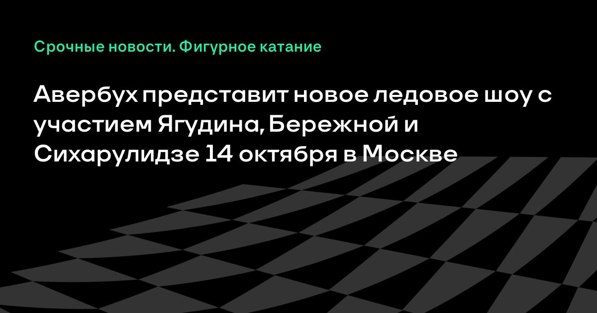Авербух представит новое ледовое шоу с участием Ягудина, Бережной и Сихарулидзе 14 октября в Москве