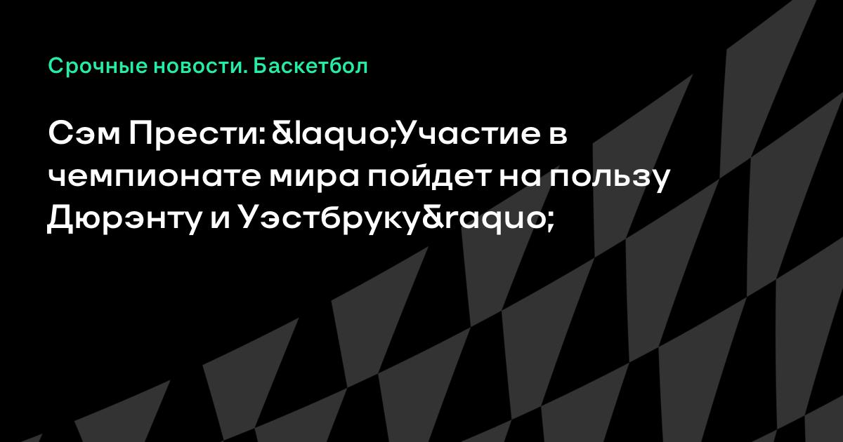 Сэм Прести: «Участие в чемпионате мира пойдет на пользу Дюрэнту и Уэстбруку»