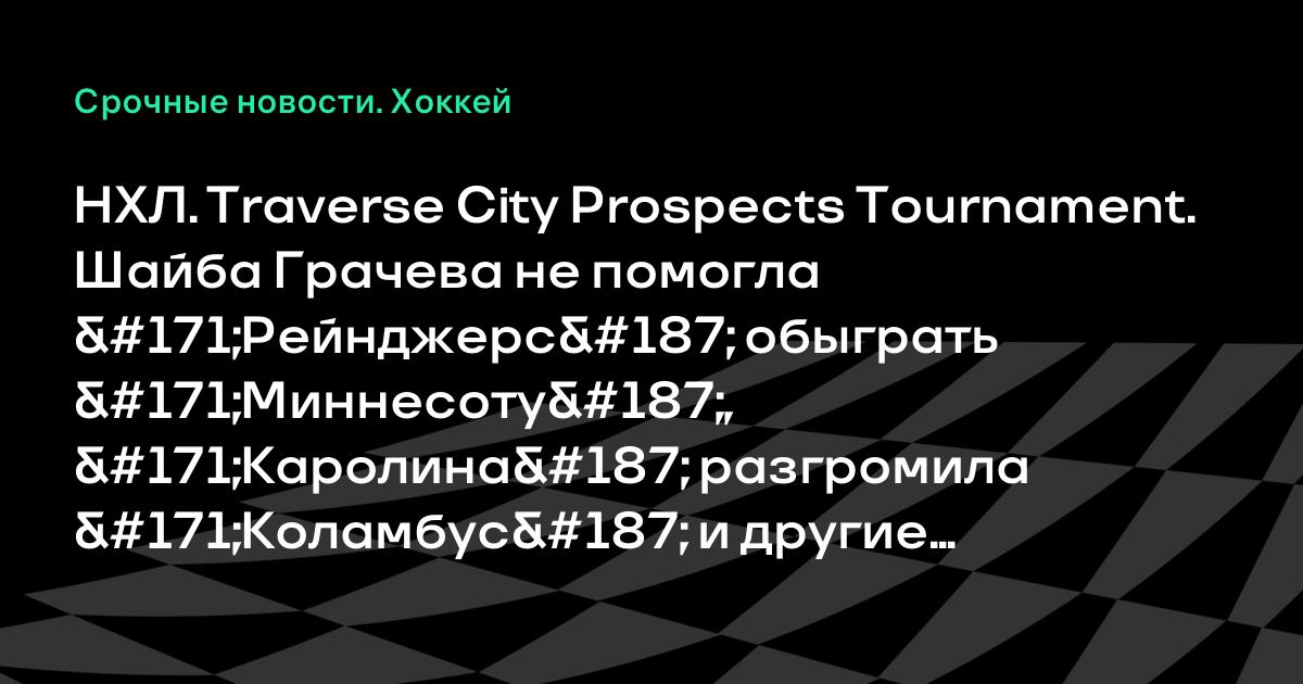 НХЛ. Traverse City Prospects Tournament. Шайба Грачева не помогла «Рейнджерс» обыграть «Миннесоту», «Каролина» разгромила «Коламбус» и другие результаты