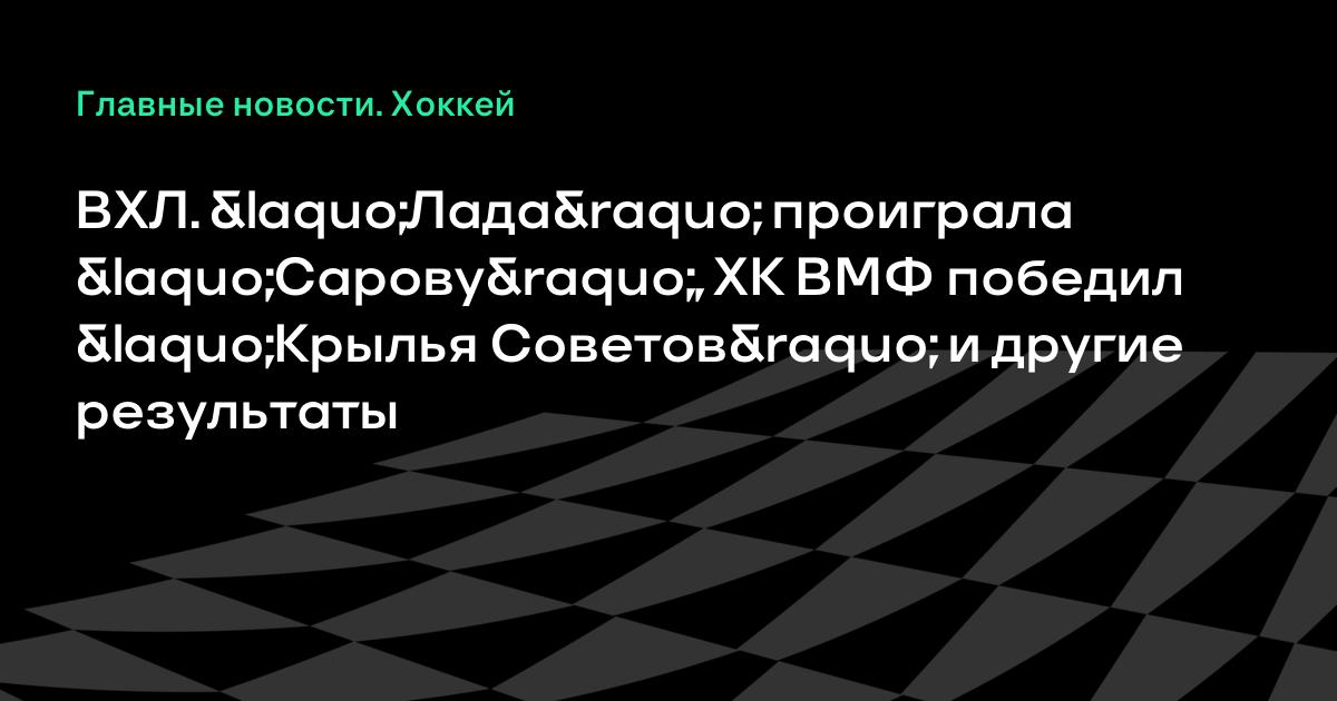 ВХЛ. «Лада» проиграла «Сарову», ХК ВМФ победил «Крылья Советов» и другие результаты