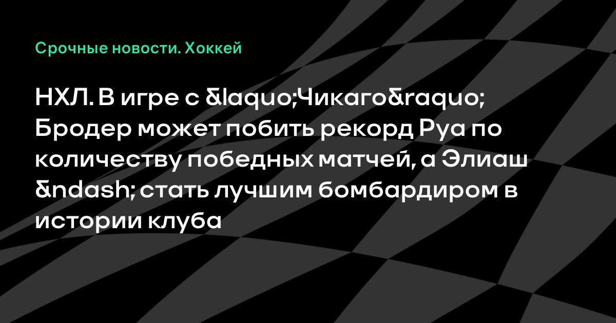 НХЛ. В игре с «Чикаго» Бродер может побить рекорд Руа по количеству победных матчей, а Элиаш – стать лучшим бомбардиром в истории клуба