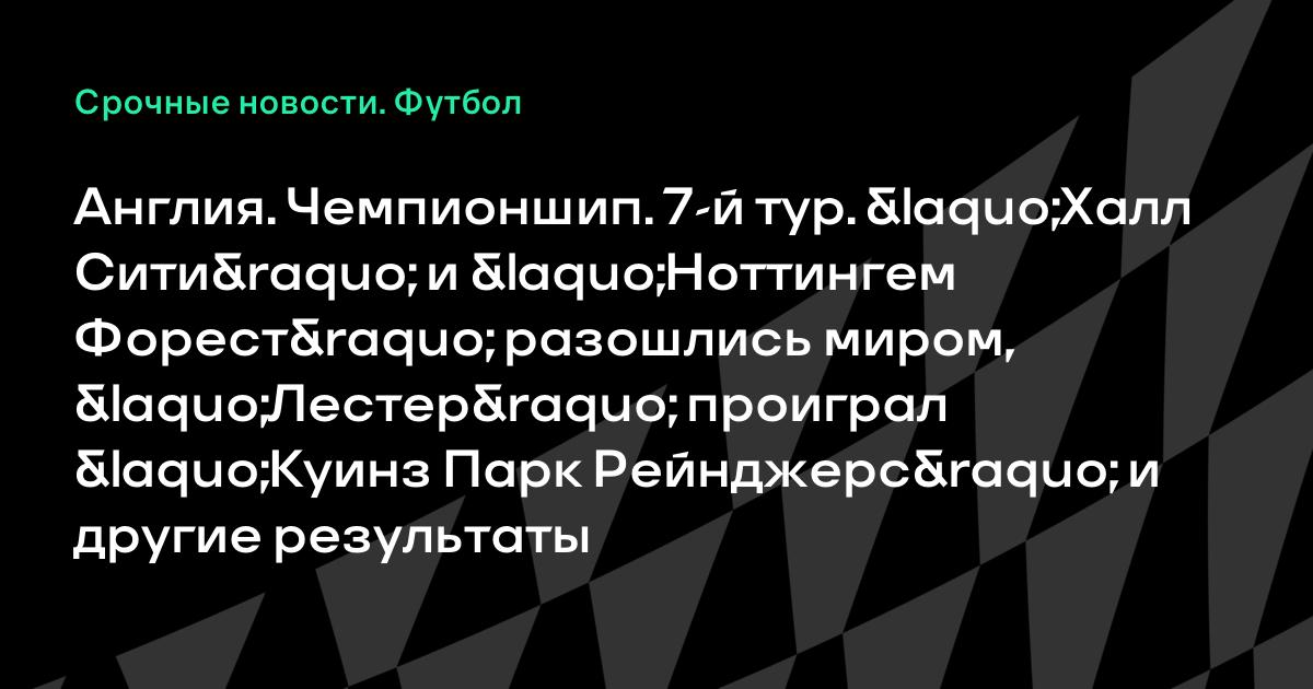 Англия. Чемпионшип. 7-й тур. «Халл Сити» и «Ноттингем Форест» разошлись миром, «Лестер» проиграл «Куинз Парк Рейнджерс» и другие результаты