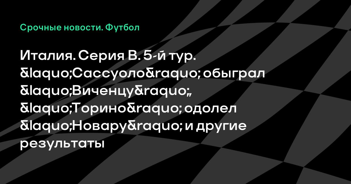 Италия. Серия В. 5-й тур. «Сассуоло» обыграл «Виченцу», «Торино» одолел «Новару» и другие результаты