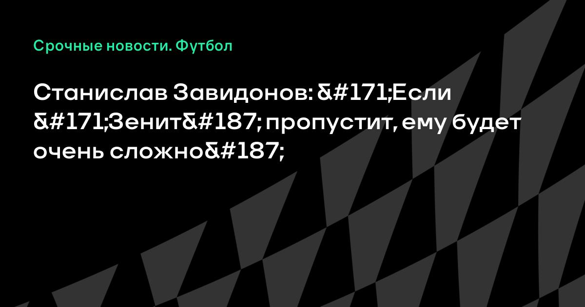 Станислав Завидонов: «Если «Зенит» пропустит, ему будет очень сложно»