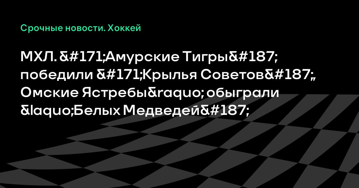 МХЛ. «Амурские Тигры» победили «Крылья Советов», Омские Ястребы» обыграли «Белых Медведей»