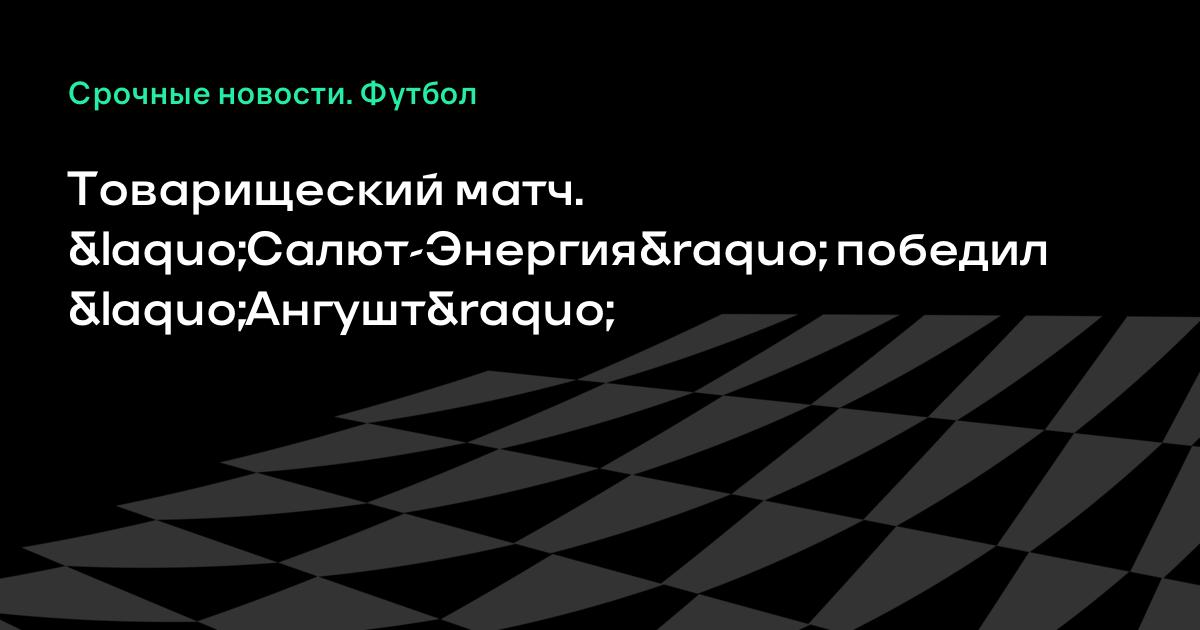 18 марта 2009, 21:13 Товарищеский матч. «Салют-Энергия» победил «Ангушт» Товарищеский матч Салют-Энергия Россия Д1 Ангушт Россия Д2 2:0 Голы: Порошин, Бекетов. Футбол товарищеские матчи (клубы) результаты Салют (до 2014)