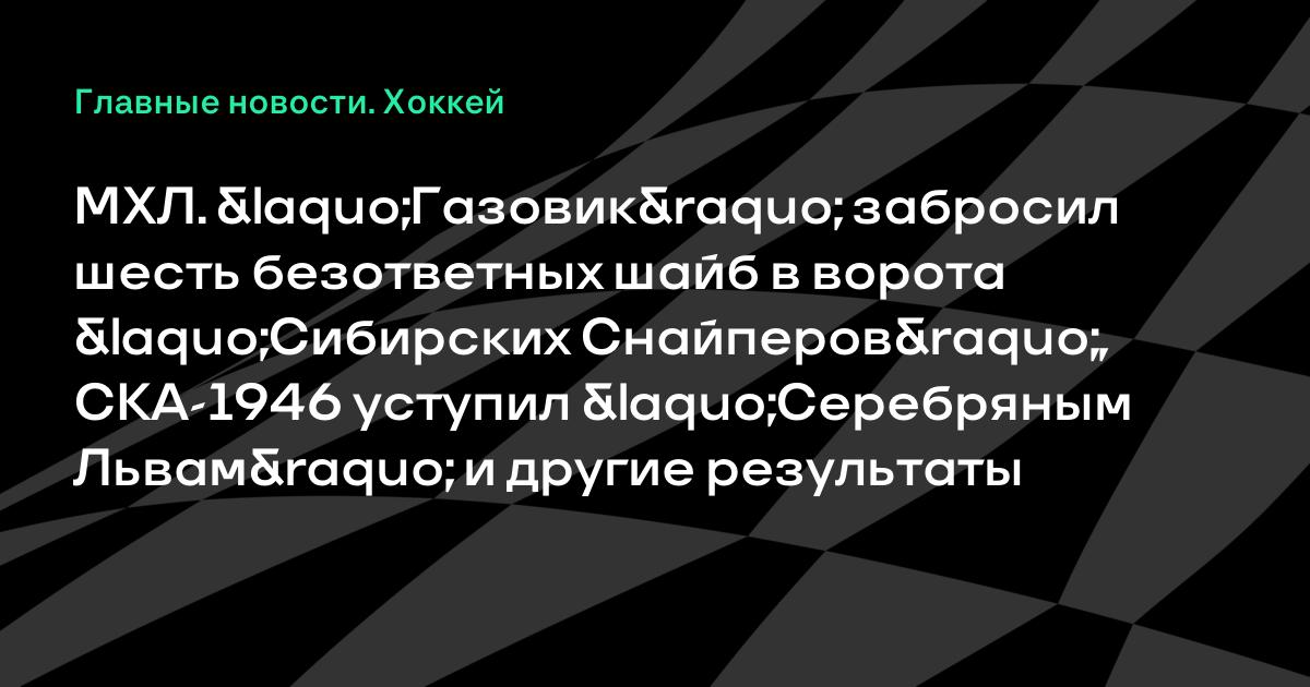 МХЛ. «Газовик» забросил шесть безответных шайб в ворота «Сибирских Снайперов», СКА-1946 уступил «Серебряным Львам» и другие результаты