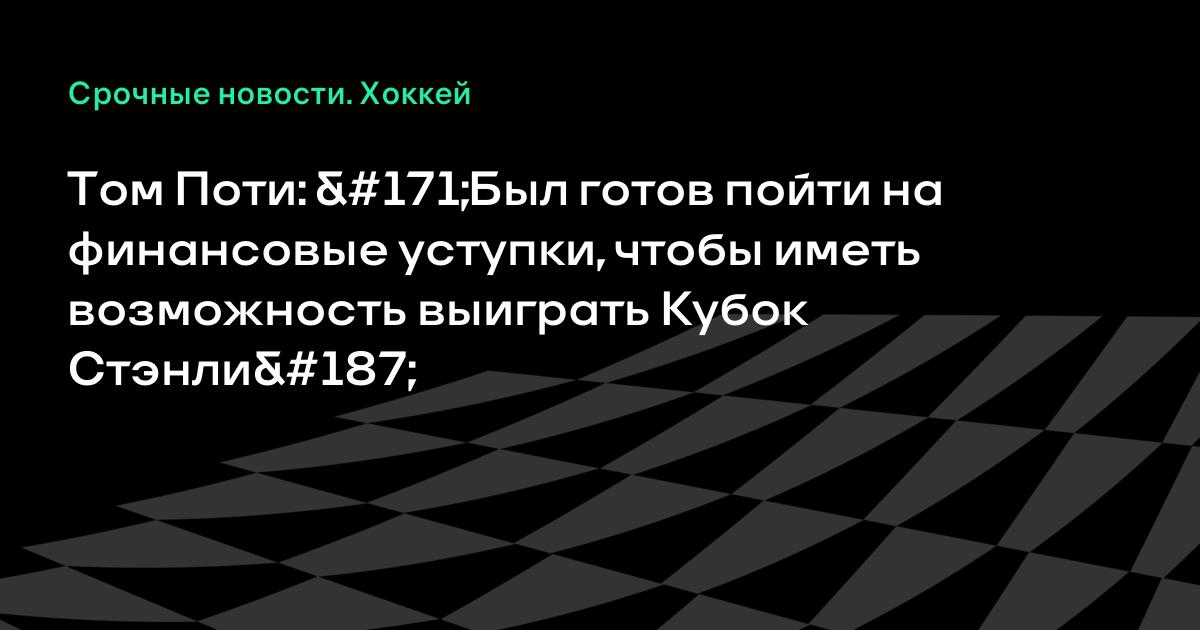 Том Поти: «Был готов пойти на финансовые уступки, чтобы иметь возможность выиграть Кубок Стэнли»