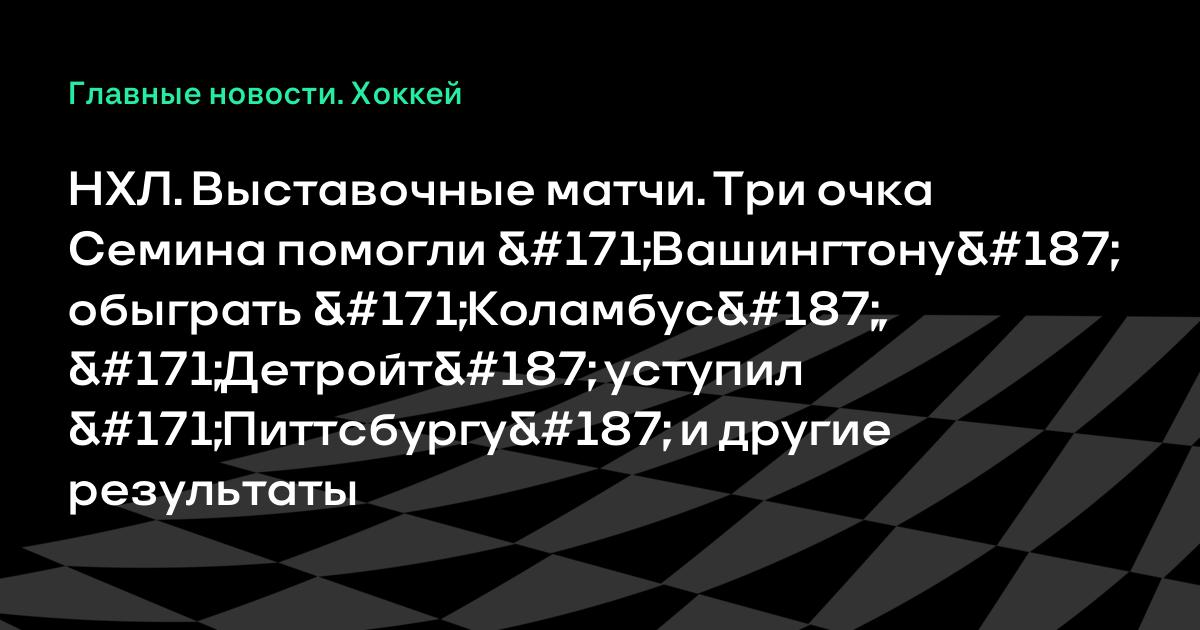 НХЛ. Выставочные матчи. Три очка Семина помогли «Вашингтону» обыграть «Коламбус», «Детройт» уступил «Питтсбургу» и другие результаты