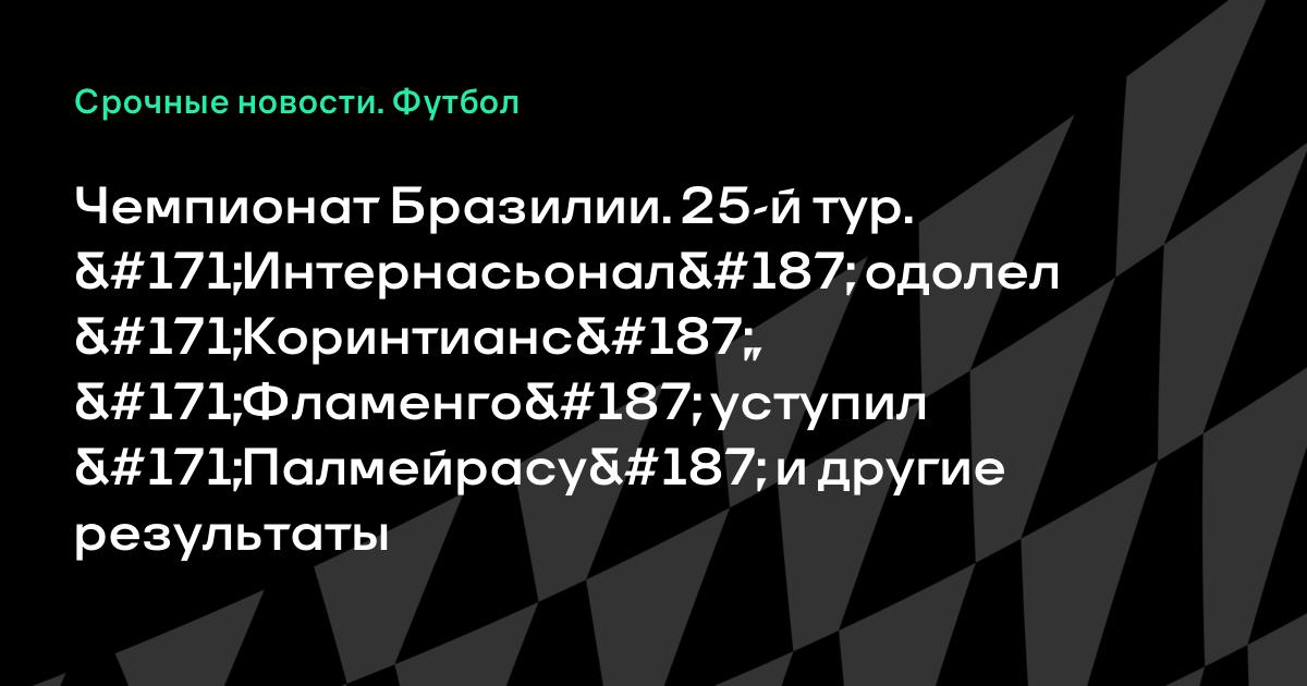 Чемпионат Бразилии. 25-й тур. «Интернасьонал» одолел «Коринтианс», «Фламенго» уступил «Палмейрасу» и другие результаты