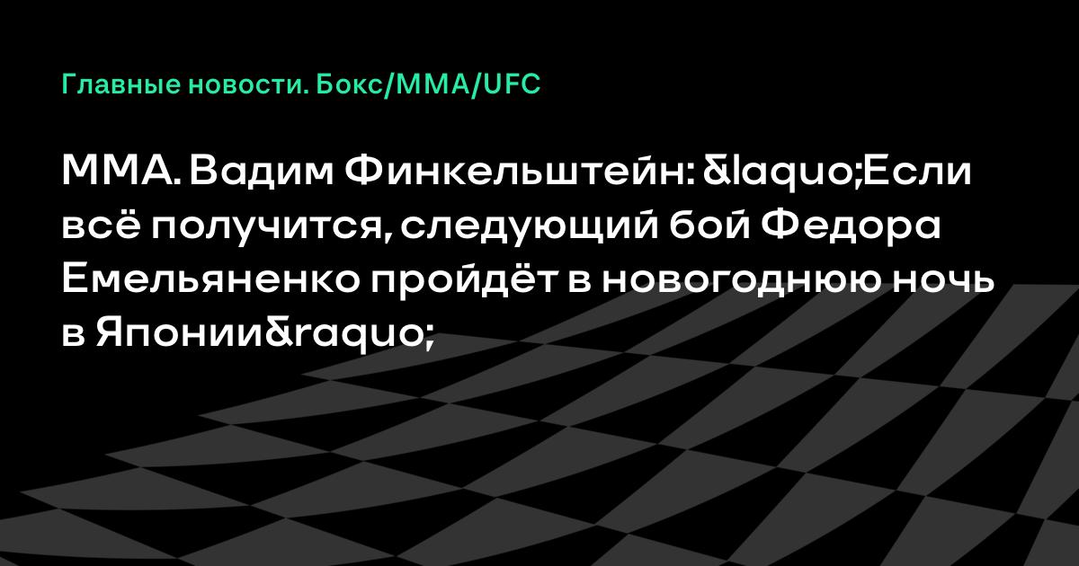 MMA. Вадим Финкельштейн: «Если всё получится, следующий бой Федора Емельяненко пройдёт в новогоднюю ночь в Японии»