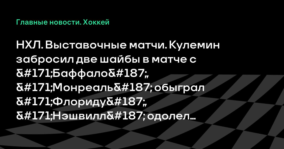 НХЛ. Выставочные матчи. Кулемин забросил две шайбы в матче с «Баффало», «Монреаль» обыграл «Флориду», «Нэшвилл» одолел «Атланту»