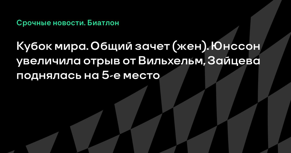 Кубок мира. Общий зачет (жен). Юнссон увеличила отрыв от Вильхельм, Зайцева поднялась на 5-е место