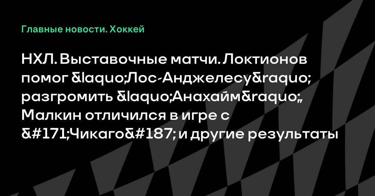НХЛ. Выставочные матчи. Локтионов помог «Лос-Анджелесу» разгромить «Анахайм», Малкин отличился в игре с «Чикаго» и другие результаты