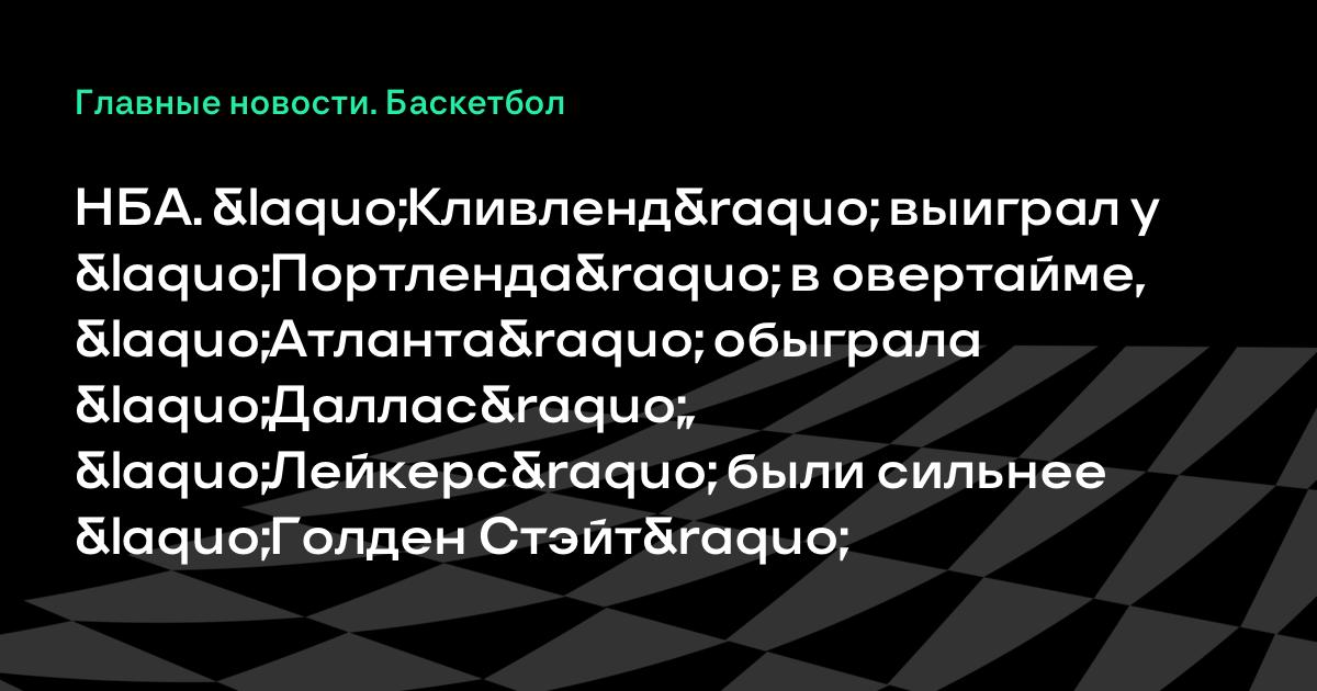 НБА. «Кливленд» выиграл у «Портленда» в овертайме, «Атланта» обыграла «Даллас», «Лейкерс» были сильнее «Голден Стэйт»