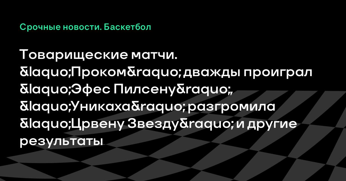 Товарищеские матчи. «Проком» дважды проиграл «Эфес Пилсену», «Уникаха» разгромила «Црвену Звезду» и другие результаты