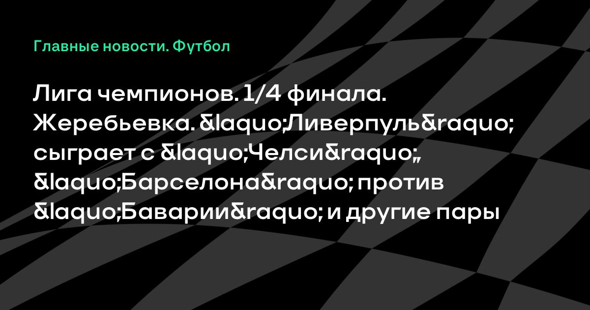 Лига чемпионов. 1/4 финала. Жеребьевка. «Ливерпуль» сыграет с «Челси», «Барселона» против «Баварии» и другие пары