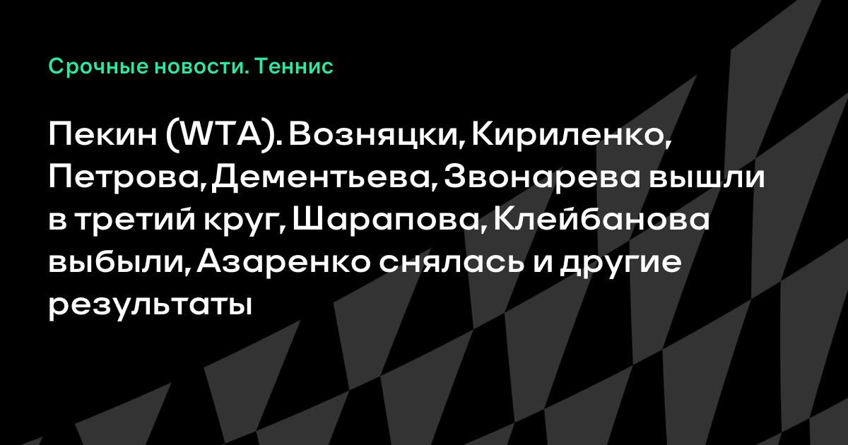 Пекин (WTA). Возняцки, Кириленко, Петрова, Дементьева, Звонарева вышли в третий круг, Шарапова, Клейбанова выбыли, Азаренко снялась и другие результаты