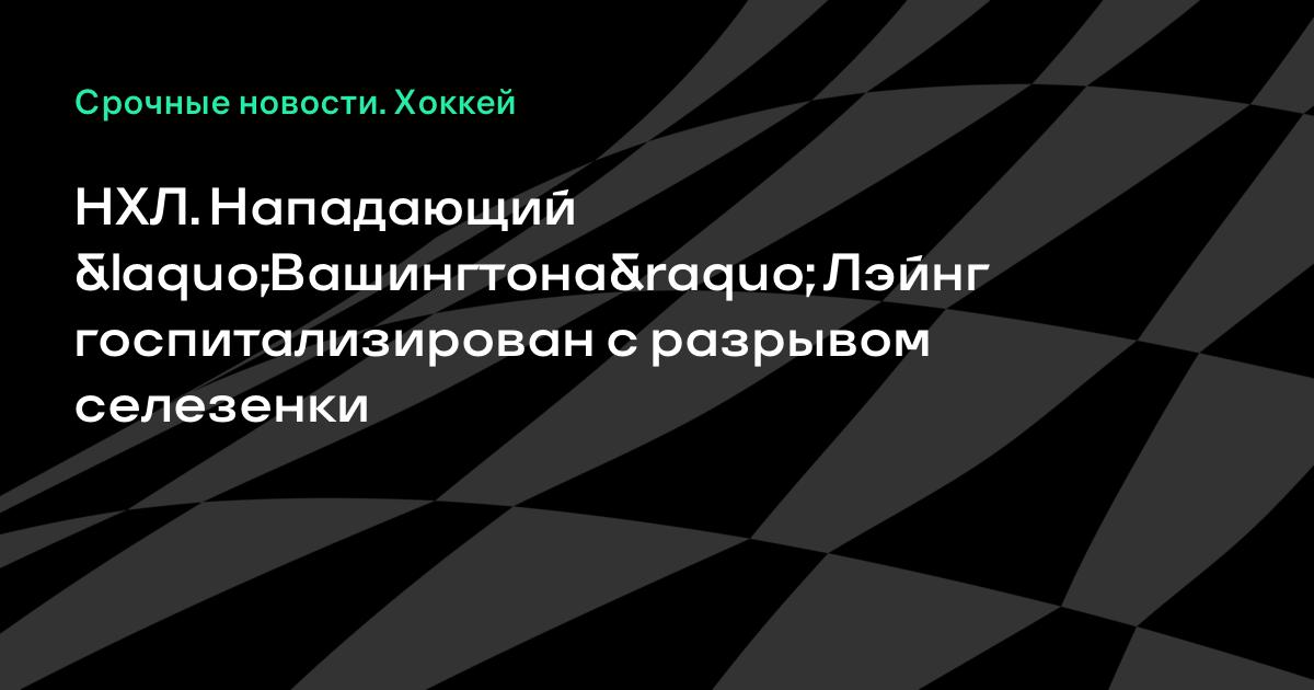 Канадский нападающий «Вашингтона» Квентин Лэйнг доставлен в больницу с разрывом селезенки.