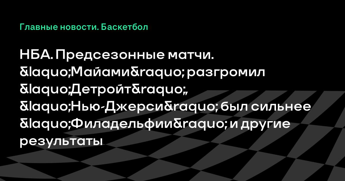 НБА. Предсезонные матчи. «Майами» разгромил «Детройт», «Нью-Джерси» был сильнее «Филадельфии» и другие результаты