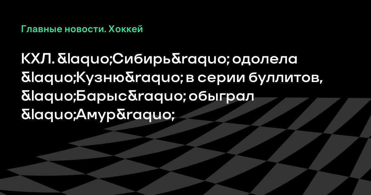 КХЛ. «Сибирь» одолела «Кузню» в серии буллитов, «Барыс» обыграл «Амур»