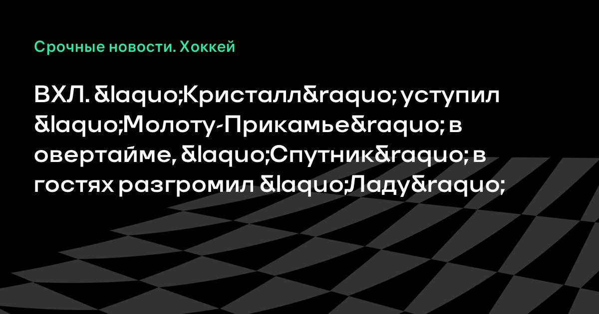 ВХЛ. «Кристалл» уступил «Молоту-Прикамье» в овертайме, «Спутник» в гостях разгромил «Ладу»