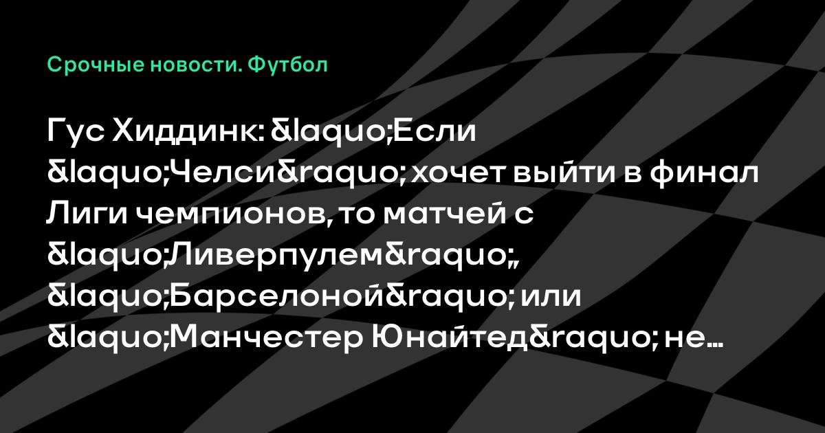 Гус Хиддинк: «Если «Челси» хочет выйти в финал Лиги чемпионов, то матчей с «Ливерпулем», «Барселоной» или «Манчестер Юнайтед» не избежать»