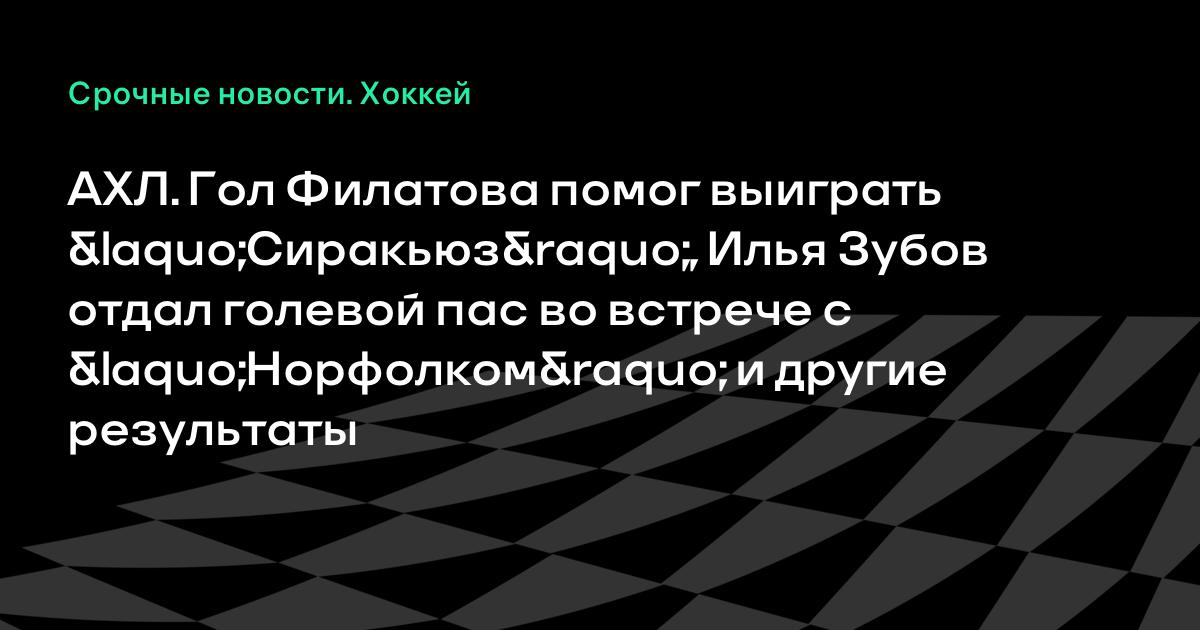 АХЛ. Гол Филатова помог выиграть «Сиракьюз», Илья Зубов отдал голевой пас во встрече с «Норфолком» и другие результаты