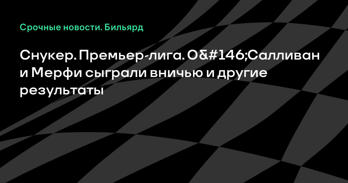 Снукер. Премьер-лига. ОСалливан и Мерфи сыграли вничью и другие результаты