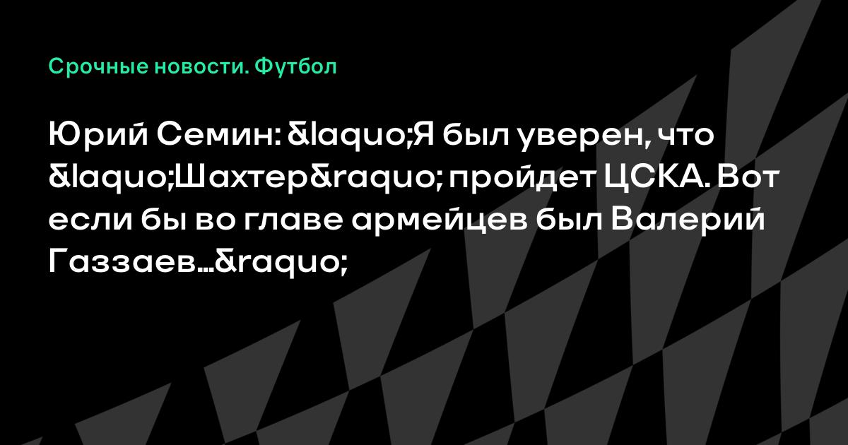 Юрий Семин: «Я был уверен, что «Шахтер» пройдет ЦСКА. Вот если бы во главе армейцев был Валерий Газзаев...»