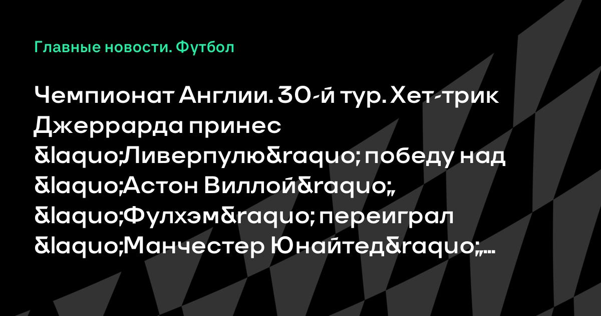 Чемпионат Англии. 30-й тур. Хет-трик Джеррарда принес «Ливерпулю» победу над «Астон Виллой», «Фулхэм» переиграл «Манчестер Юнайтед», «Тоттенхэм» – «Челси» и другие результаты