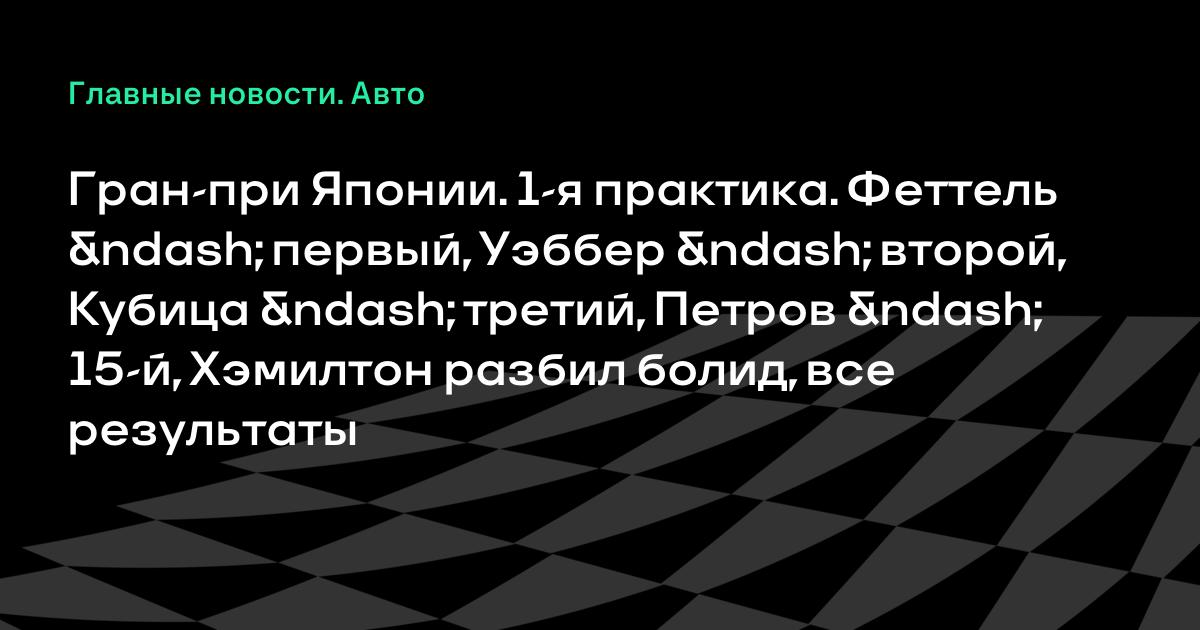 Гран-при Японии. 1-я практика. Феттель – первый, Уэббер – второй, Кубица – третий, Петров – 15-й, Хэмилтон разбил болид, все результаты