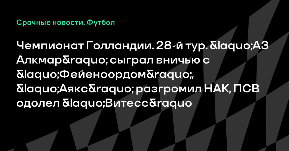 Чемпионат Голландии. 28-й тур. «АЗ Алкмар» сыграл вничью с «Фейеноордом», «Аякс» разгромил НАК, ПСВ одолел «Витесс»