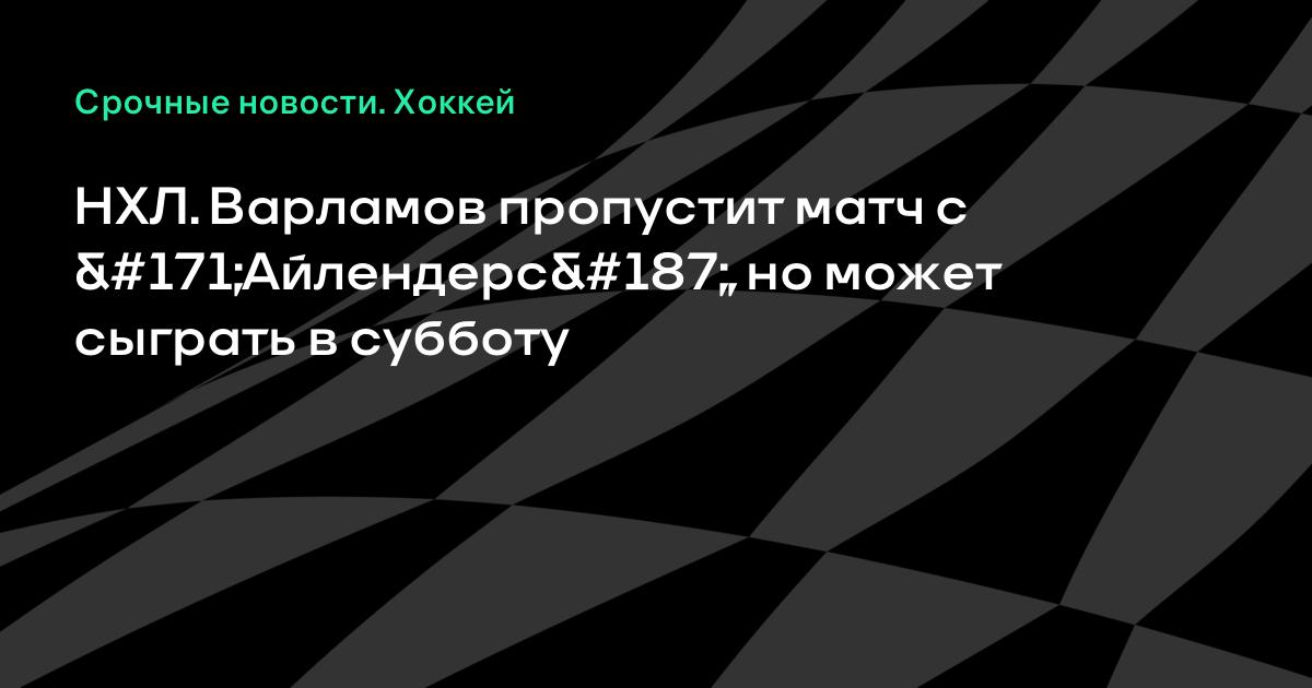 НХЛ. Варламов пропустит матч с «Айлендерс», но может сыграть в субботу