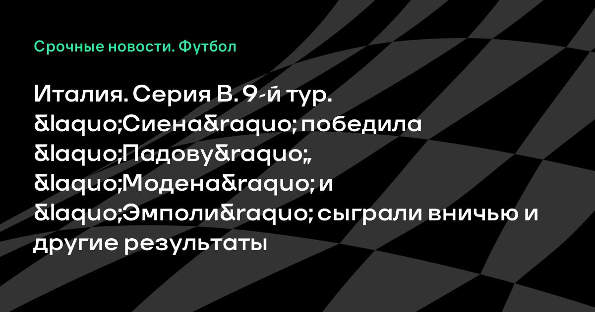 Италия. Серия В. 9-й тур. «Сиена» победила «Падову», «Модена» и «Эмполи» сыграли вничью и другие результаты